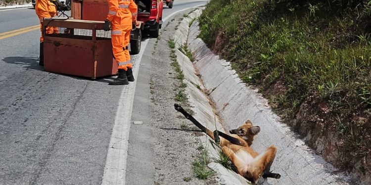 Na manhã de sábado (1º), um lobo-guará foi encontrado ferido na BR-494, cerca de quatro quilômetros após o município de Ritápolis, em direção a São Tiago. O animal, símbolo do Cerrado e ameaçado de extinção, foi resgatado por uma equipe do Corpo de Bombeiros Militar de São João del-Rei.
